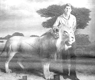 Developer Ray Huffman and the stuffed lion he hunted in Botswana.